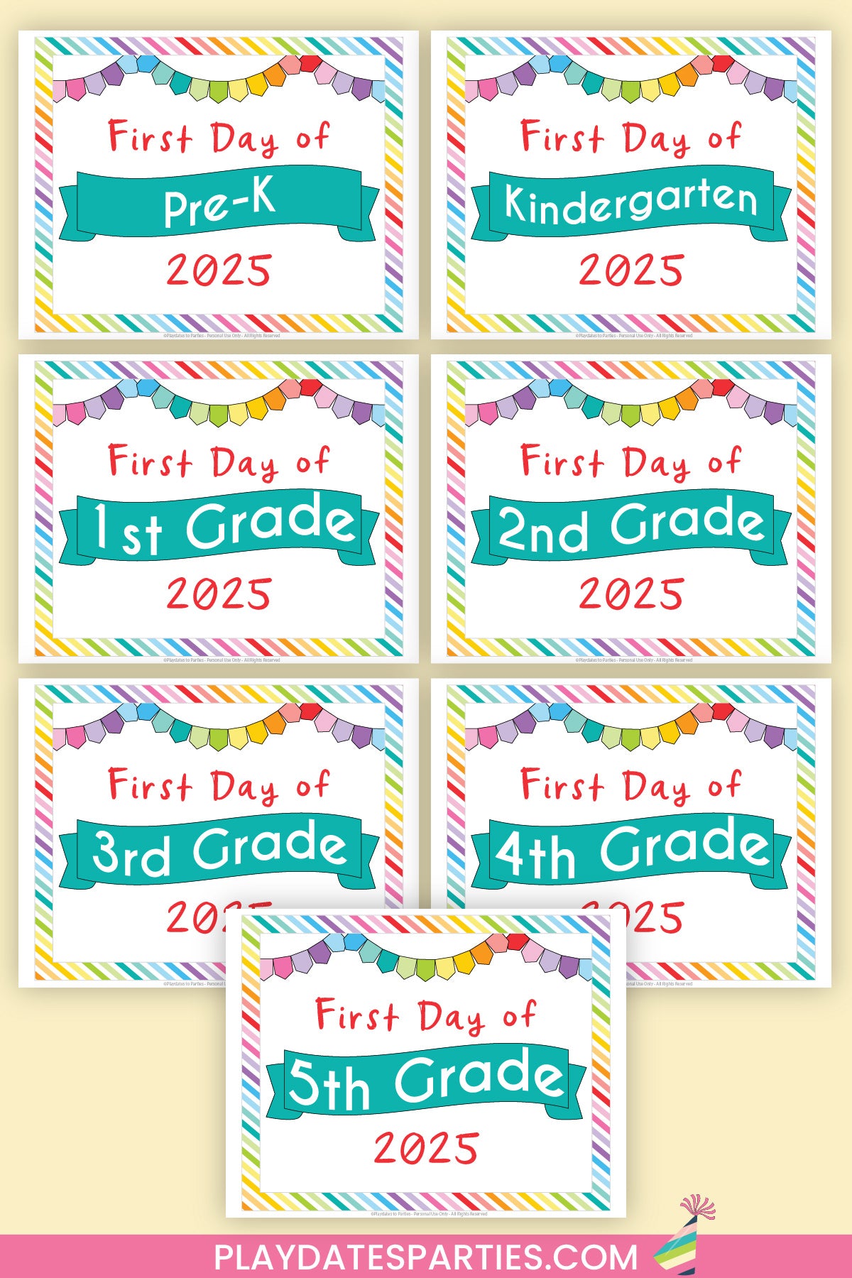 - Printable first day of school signs (Pre-K through 12th) (High Resolution 300 DPI PDF)